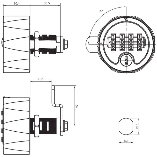 The installation is extremely simple for a 16x19mm standard door hole, which makes this lock ideal for retrofitting. The locking mechanism and all load-absorbing locking elements are made of solid zinc die-cast iron. For a pleasant feel, the controls housing and number wheels consist of a high-strength, glass-fibre reinforced plastic.