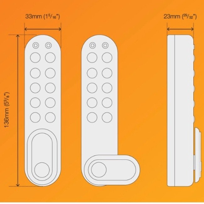 - Lock Dimensions: 136mm (5 3⁄8″) x 28mm (11⁄16″) x 33mm (15⁄16″)